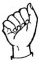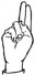 На ћирилици написано ДИЈАНА БИБЕР састоји се из 11 слова [?]. Исписано ћириличном једноручном азбуком за глувонеме: